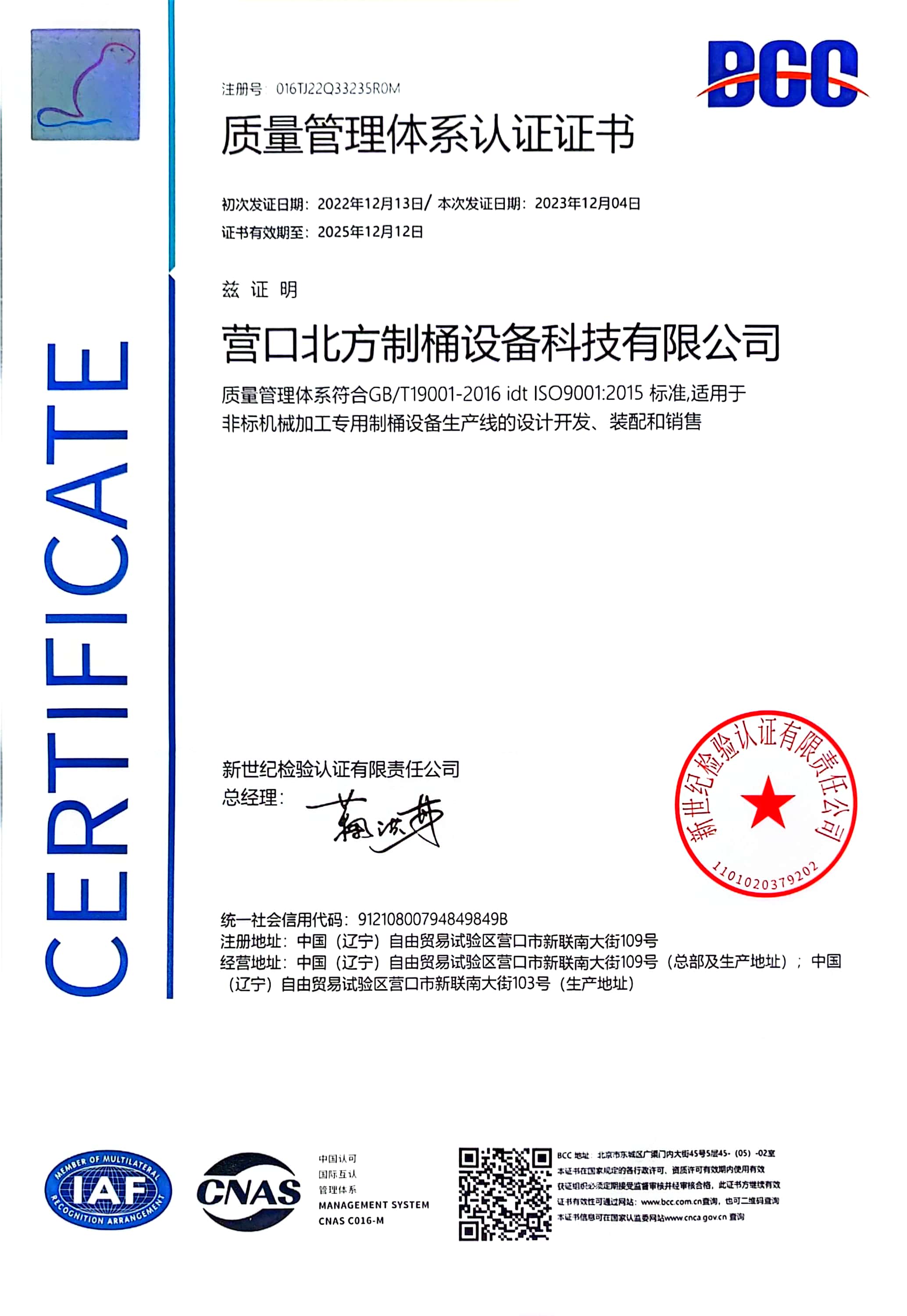 營口北方制桶設備科技有限公司是原中國石油天然氣集團公司(中石油)營口制桶廠(始建于1908年)改制后組建的股份公司,是國內既生產(chǎn)制桶設備又生產(chǎn)鋼桶的專業(yè)公司,也是中國生產(chǎn)全套高速制桶設備的專業(yè)公司。公司是國家高新技術企業(yè),擁有自主知識產(chǎn)權的核心技術。員工180人,大專以上科技人員占公司總人數(shù)的32%。其中工程技術人員41人,高級工程師16人,工程師24人,是一家集制桶設備科研、設計、生產(chǎn)、維修、銷售和生產(chǎn)線系統(tǒng)集成為一體的技術性企業(yè),曾隸屬國務院原商業(yè)部、中石化、中石油。詳見《北方制桶設備簡介》。