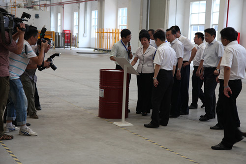 2012年8月21日無(wú)錫市市委書(shū)記、市長(zhǎng)視察本公司正在德國(guó)毛瑟公司內(nèi)調(diào)試的制桶設(shè)備現(xiàn)場(chǎng)
