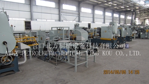 3、桶身及鋼桶成型機(jī)組 高速液壓板邊機(jī)、高速液壓漲筋機(jī)、高速液壓W波紋機(jī)、高速卷邊機(jī)、多工位輸送鏈、自動上蓋機(jī)組、驗漏機(jī)、吹桶機(jī)、尋縫機(jī)、擦桶機(jī)及其他輔助設(shè)備。