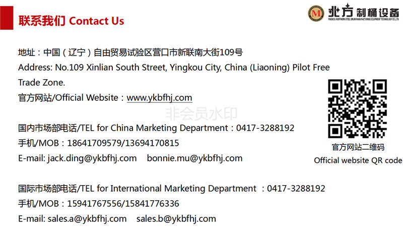 主辦單位:營(yíng)口北方制桶設(shè)備科技有限公司 市場(chǎng)部電話:0417-3288192 備件銷(xiāo)售熱線:0417-3288192 售后服務(wù)熱線:0417-3288153