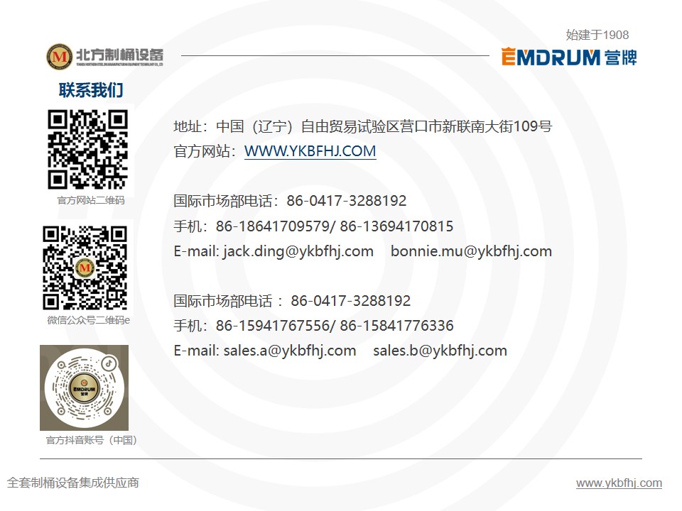 | 主辦單位:營口北方制桶設(shè)備科技有限公司 市場部電話:0417-3288192 備件銷售熱線:0417-3288192 售后服務(wù)熱線:0417-3288153 公司地址:中國(遼寧)自由貿(mào)易試驗區(qū)營口市新聯(lián)南大街109號 遼ICP備05010392號-1 遼公安網(wǎng)備:21080302000298 版權(quán)發(fā)布:營口北方制桶設(shè)備科技有限公司 技術(shù)支持:營口愛思達(dá)計算機(jī)信息網(wǎng)絡(luò)有限公司 |