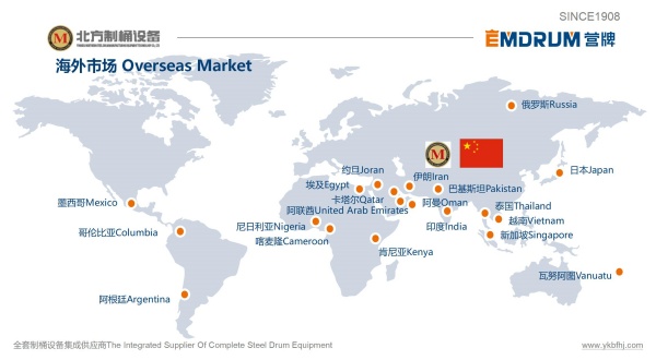 營口北方制桶設(shè)備從2007年開始涉足外貿(mào)出口業(yè)務(wù),2019年開始參展廣交會,作為一家有著百年歷史的全套制桶設(shè)備集成供應(yīng)商,我們已經(jīng)以交鑰匙工程方式專業(yè)服務(wù)海外用戶17個年頭,至此,營口北方制桶設(shè)備已將制桶設(shè)備出口至日本、新加坡、墨西哥、阿根廷、俄羅斯、阿聯(lián)酋、卡塔爾、泰國、約旦、哥倫比亞、埃及、越南,阿曼、尼日利亞、瓦努阿圖、肯尼亞、巴基斯坦、喀麥隆等國家和地區(qū)。